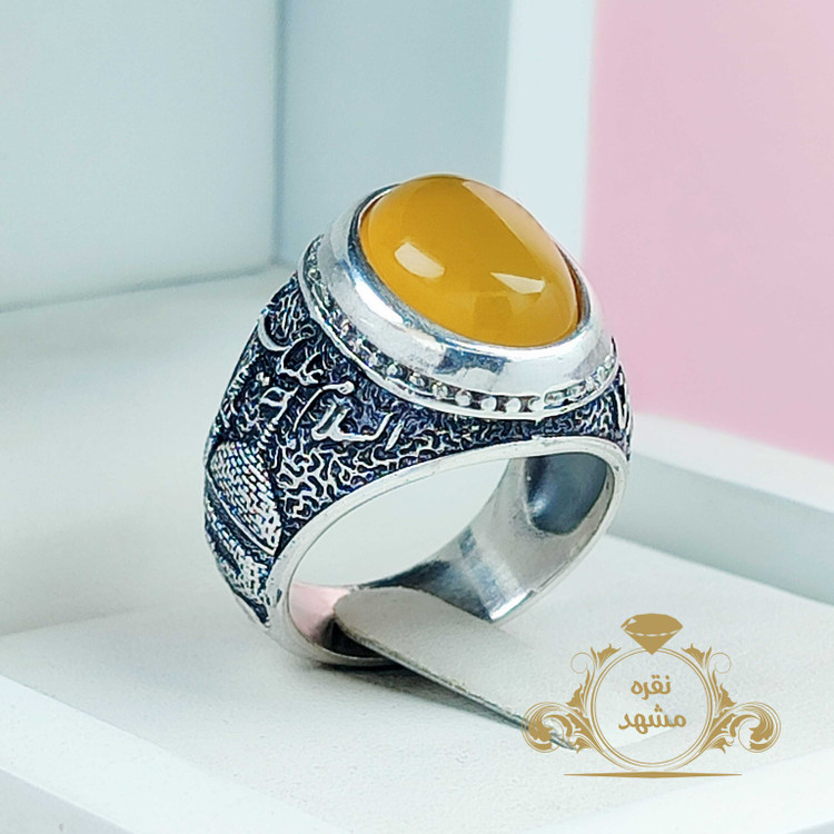 انگشتر یا علی بن موسی الرضا عقیق زرد شرف الشمس مردانه