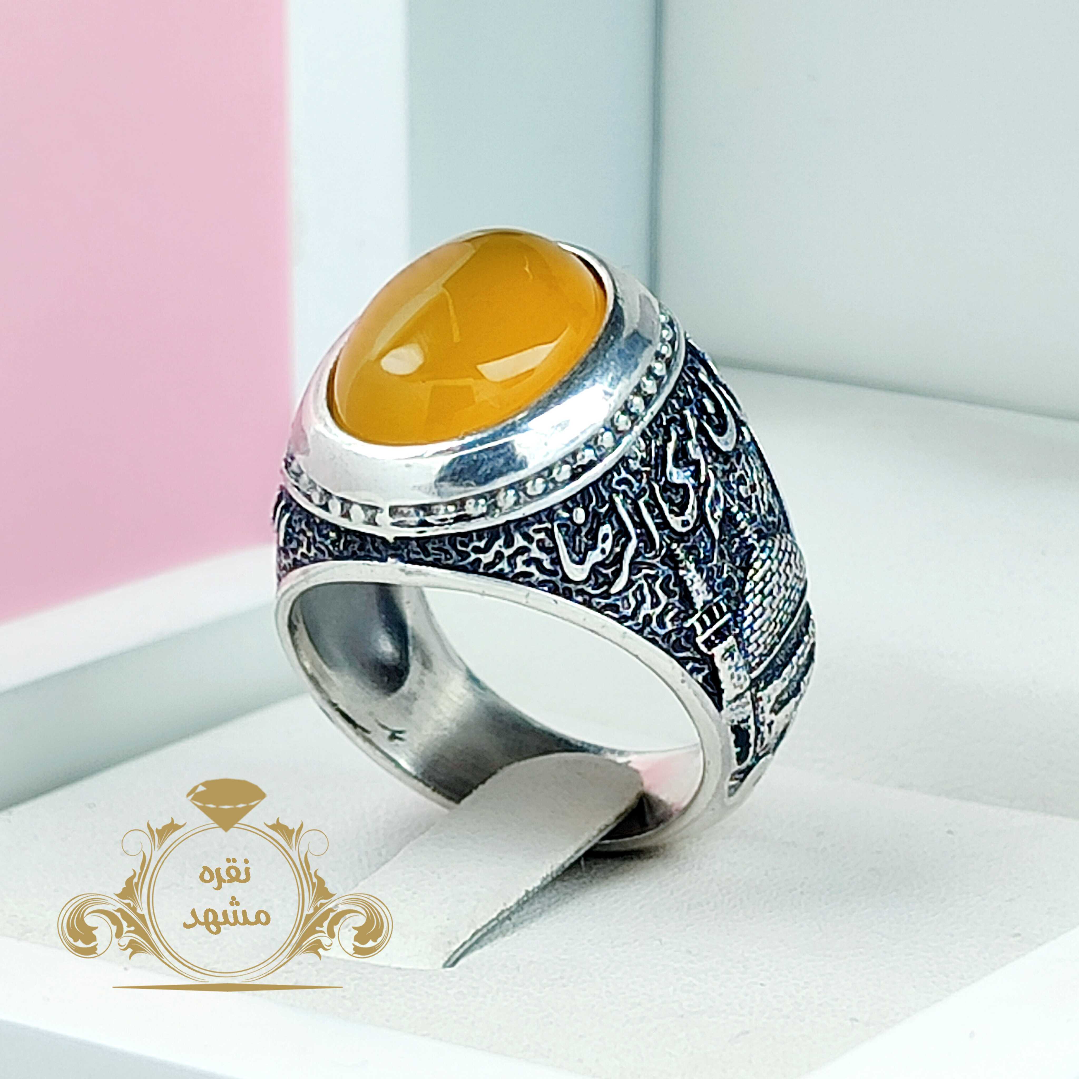 انگشتر یا علی بن موسی الرضا عقیق زرد شرف الشمس مردانه
