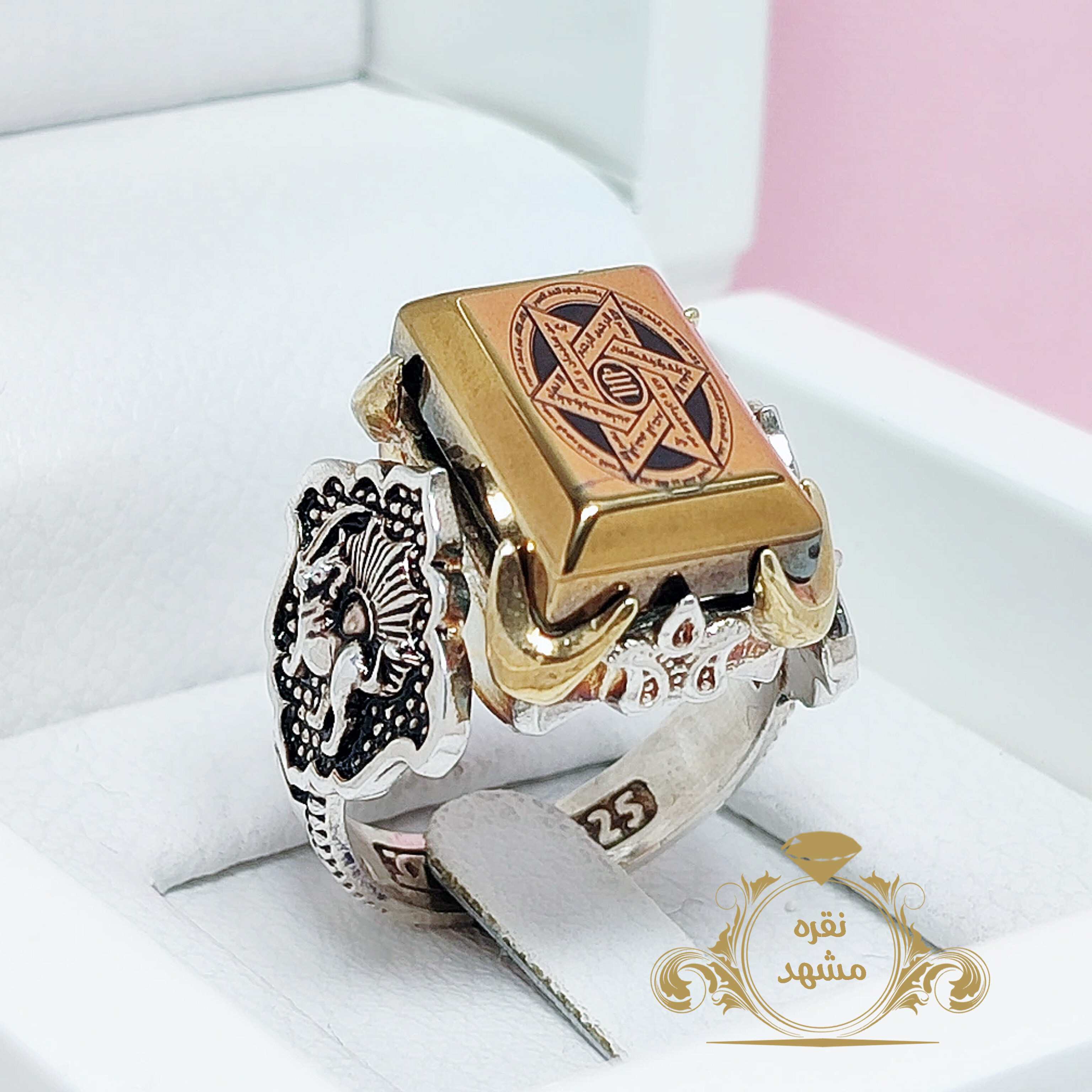 انگشتر ستاره سلیمان حدید طلایی نقره 925